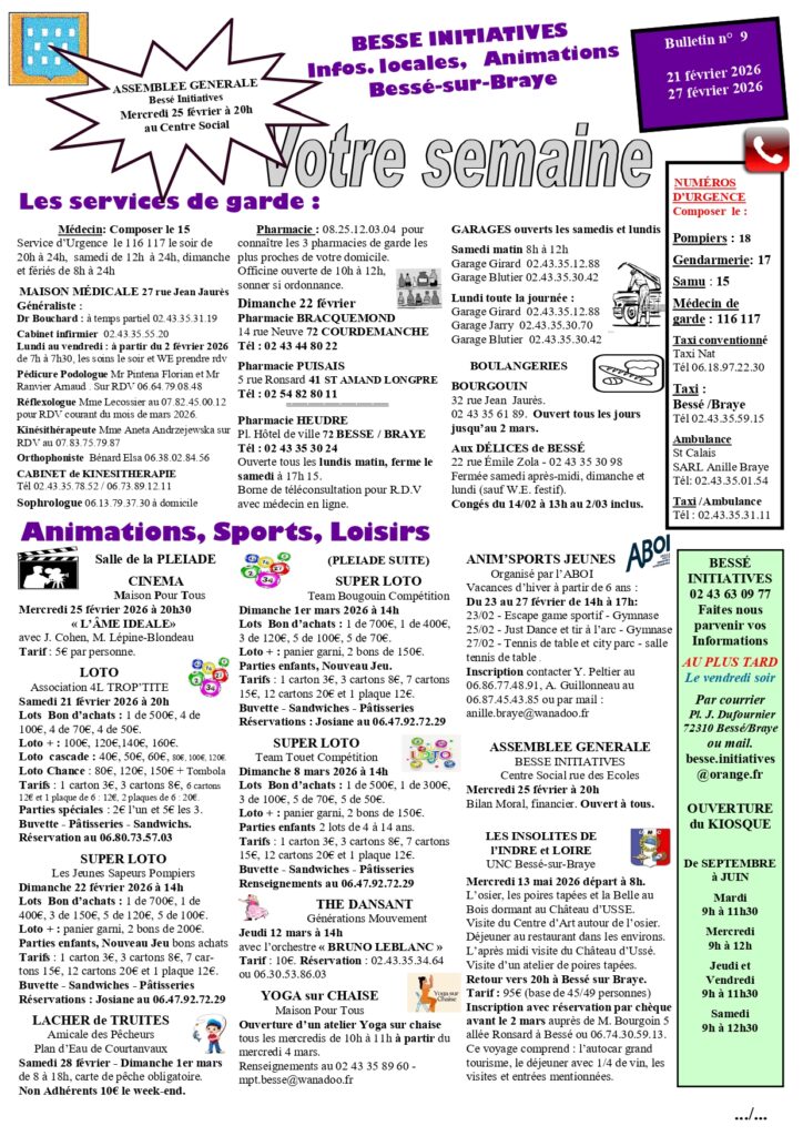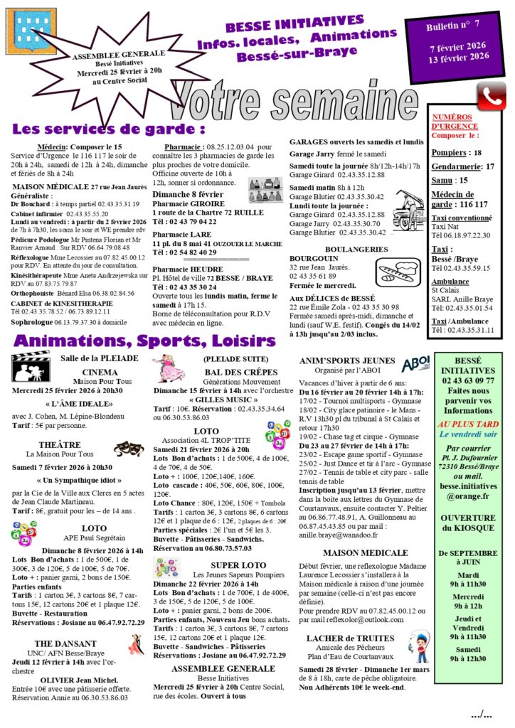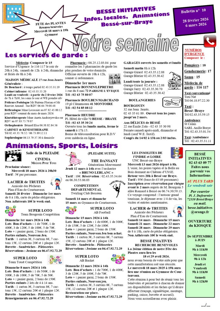 Tenez-vous au courant de toutes les actualités de Bessé-sur-Braye ! Retrouvez ici les différentes informations, nouvelles, annonces…